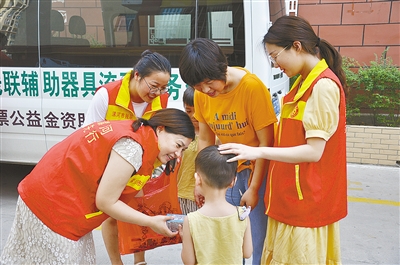7月26日~8月9日,市殘聯(lián)黨員干部深入殘疾兒童家庭,開展民生實事大走訪活動,并為殘疾兒童送去生活用品。記者 王艷彬 攝