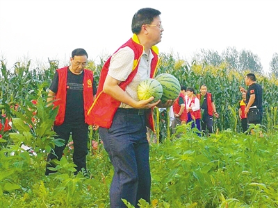 黨員志愿者幫村民摘西瓜、收玉米。